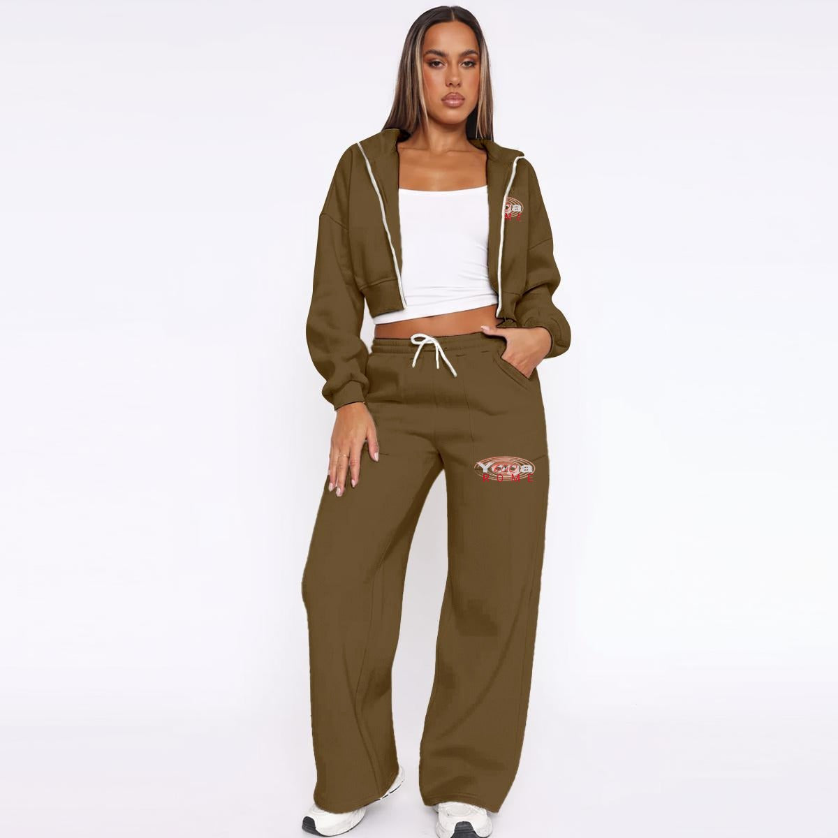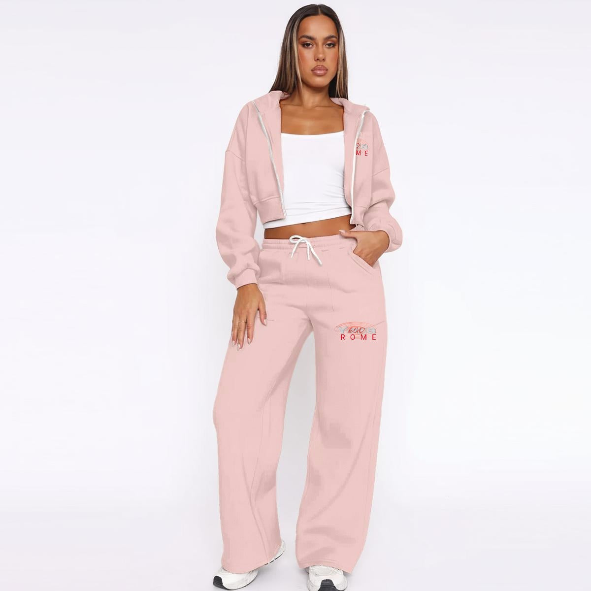This women's tracksuit is crafted from soft fleece fabric for warmth without bulk, making it an ideal choice for fall, winter, or early spring. The cropped hoodie features a drawstring hood and a stylish, slim fit, perfect with high-waisted pants featuring an elastic waistband and drawstring for an adjustable fit. This seamless blend of comfort and style makes it the perfect choice for casual wear, activewear, or everyday casual wear.