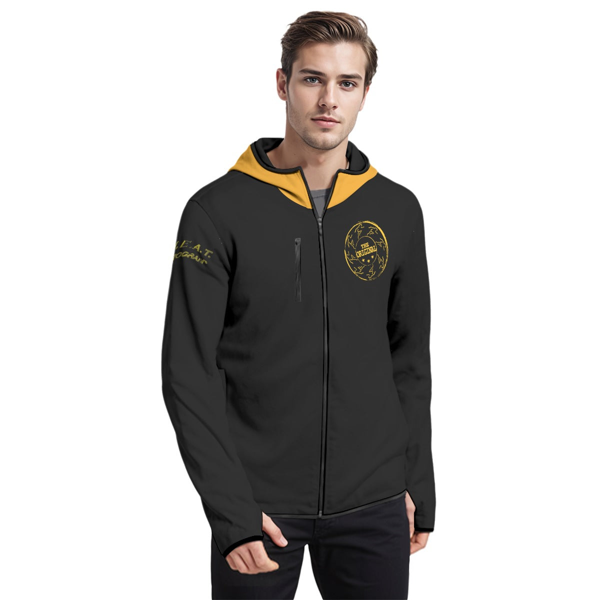 This stylish men's hoodie features a classic design with a chin-protecting high collar, shielding you from cold winds. Made from high-stretch fabric, it offers exceptional comfort and flexibility for daily wear or sports. The thumb holes enhance warmth and ensure a snug fit, while the black elastic binding on the hood and hem adds durability and flair. Perfect for outdoor activities, casual outings, or everyday streetwear, this hoodie keeps you looking stylish and feeling comfortable. Shop now for unmatched comfort!